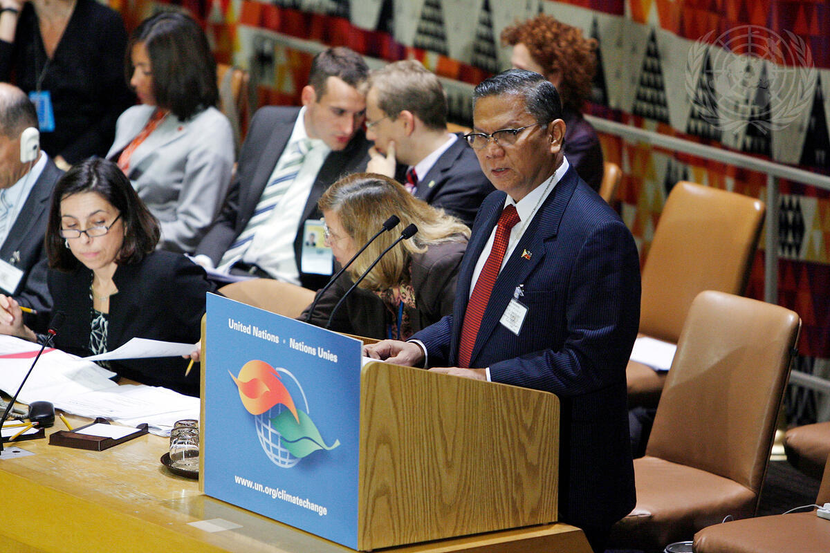 Angelo Reyes, Minister of the Environment of the Republic of the Philippines, addresses the thematic plenary meeting on technology: ""Innovating a climate-friendly world - the role of technology and its dissemination"", at UN Headquarters in New York.