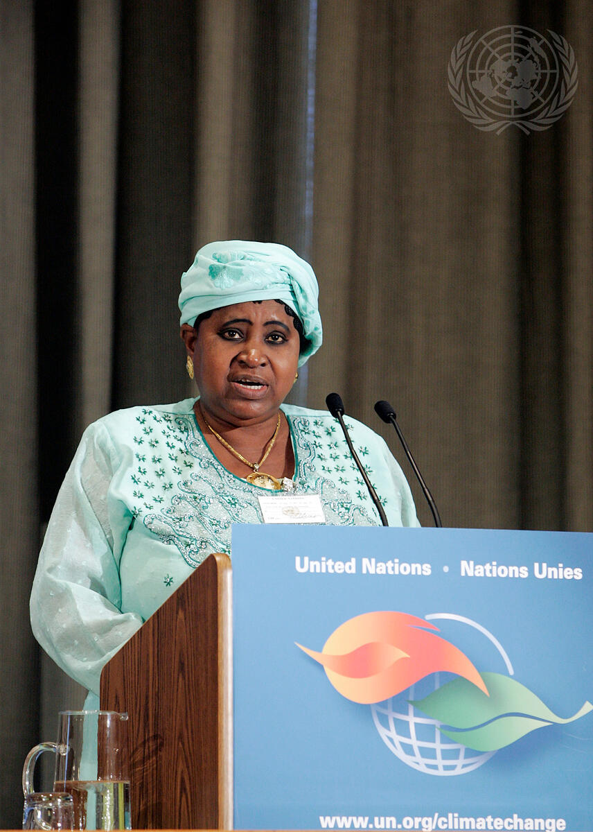 Isatou Njie Saidy, Vice-President of the Republic of the Gambia, addresses the thematic plenary meeting on ""Financing the response to climate change - investing in tomorrow"", at UN Headquarters in New York