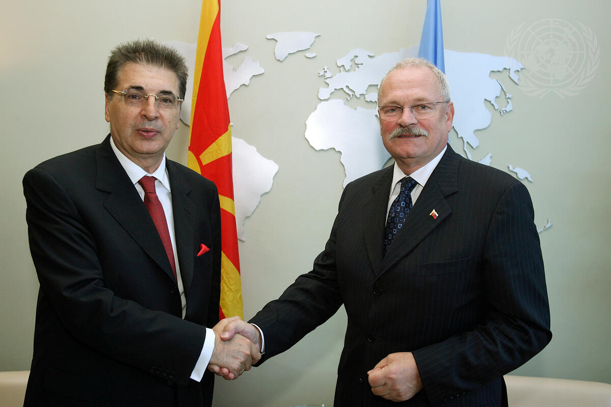 General Assembly President Srgjan Kerim (left) meets with Ivan Gasparovic, President of the Slovak Republic, at UN Headquarters in New York.