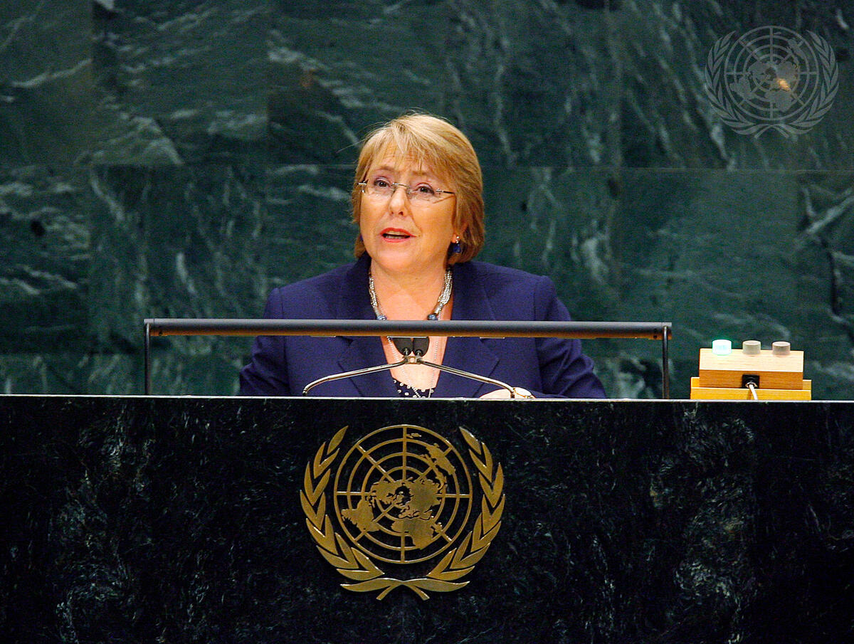 Michelle Bachelet Jeria, President of Chile, addresses the High-Level meeting on Climate Change, at UN Headquarters in New York.