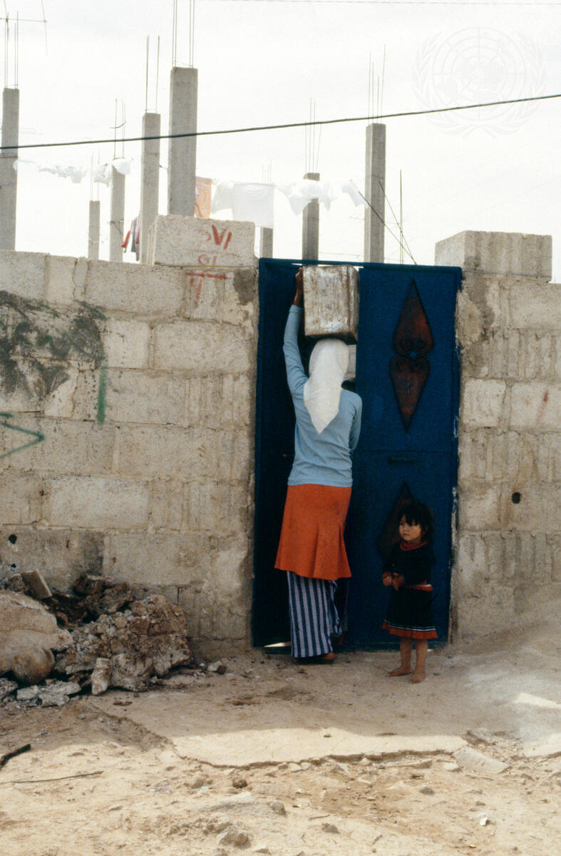 Khan Eshieh, a Palestine refugee camp on the outskirts of Damascus, operated by the United Nations Relief and Works Agency for Palestine Refugees in the Near East (UNRWA).