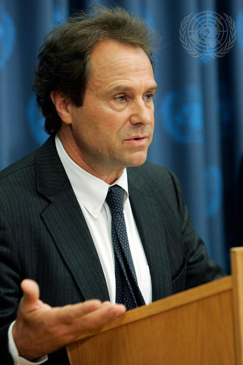 Eric Laroche, United Nations Humanitarian Coordinator for Somalia, briefs the media about the humanitarian situation in that country, at UN Headquarters in New York.