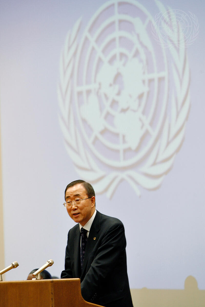 Secretary-General Ban Ki-moon speaks to staff of the United Nations Office in Vienna, Austria, during a town-hall meeting and also participates in the UN21 awards ceremony.