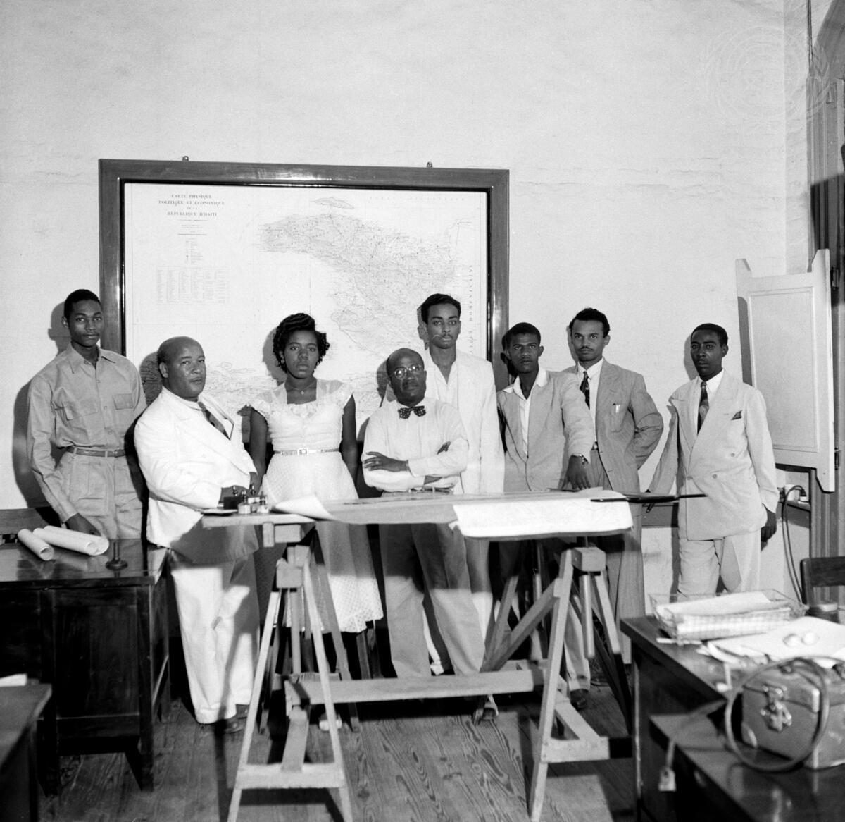 Members of the Haitian Department of Public Works who are taking part in the major Artibonite Valley drainage and irrigation project undertaken by the Government upon recommendation of the U.N. Mission. [No exact date]