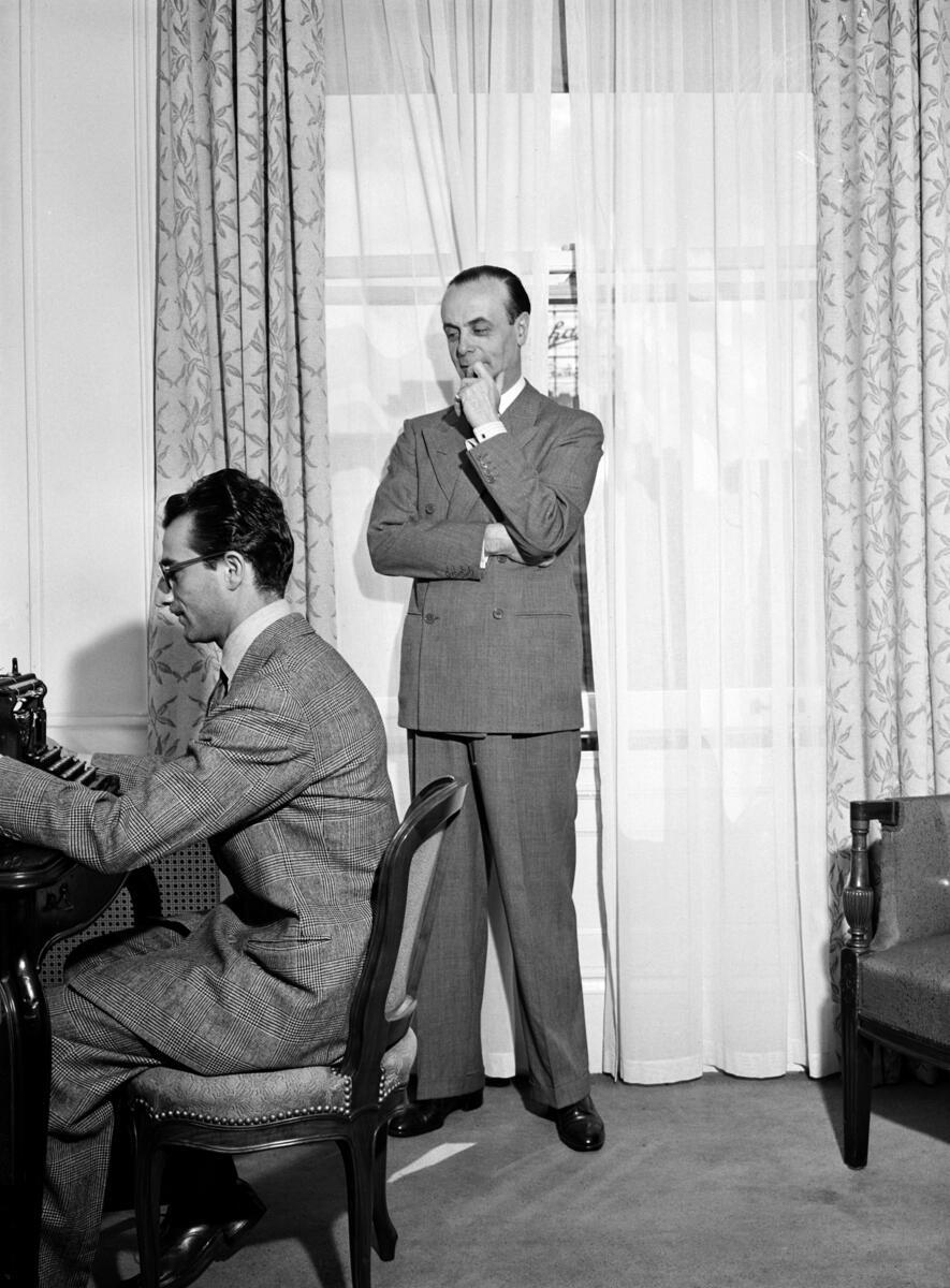 Miguel Angel Carcano, Ambassador to the United Kingdom, Vice Chairman of the delegation of Argentina in the office of their delegation at the Sir Francis Drake Hotel. [no date]