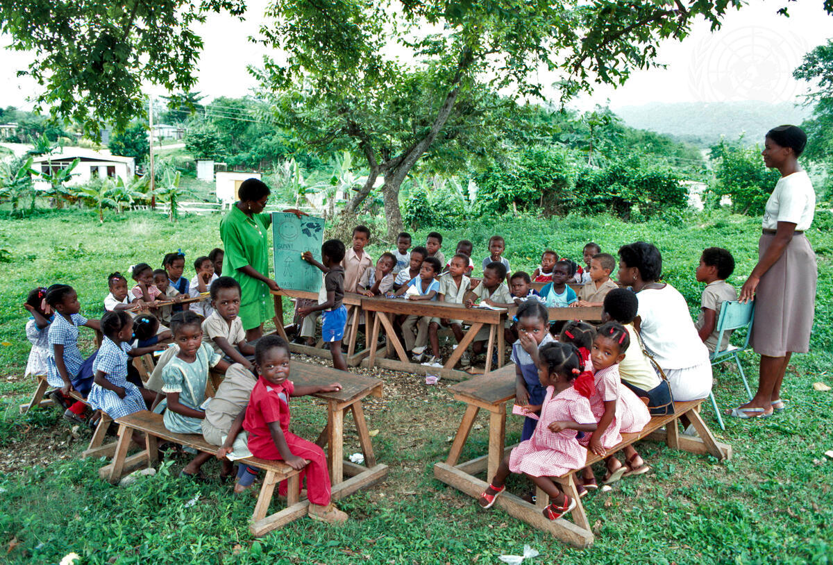 Outdoor class runs by the local community for the children of squatters in Negril, Jamaica.