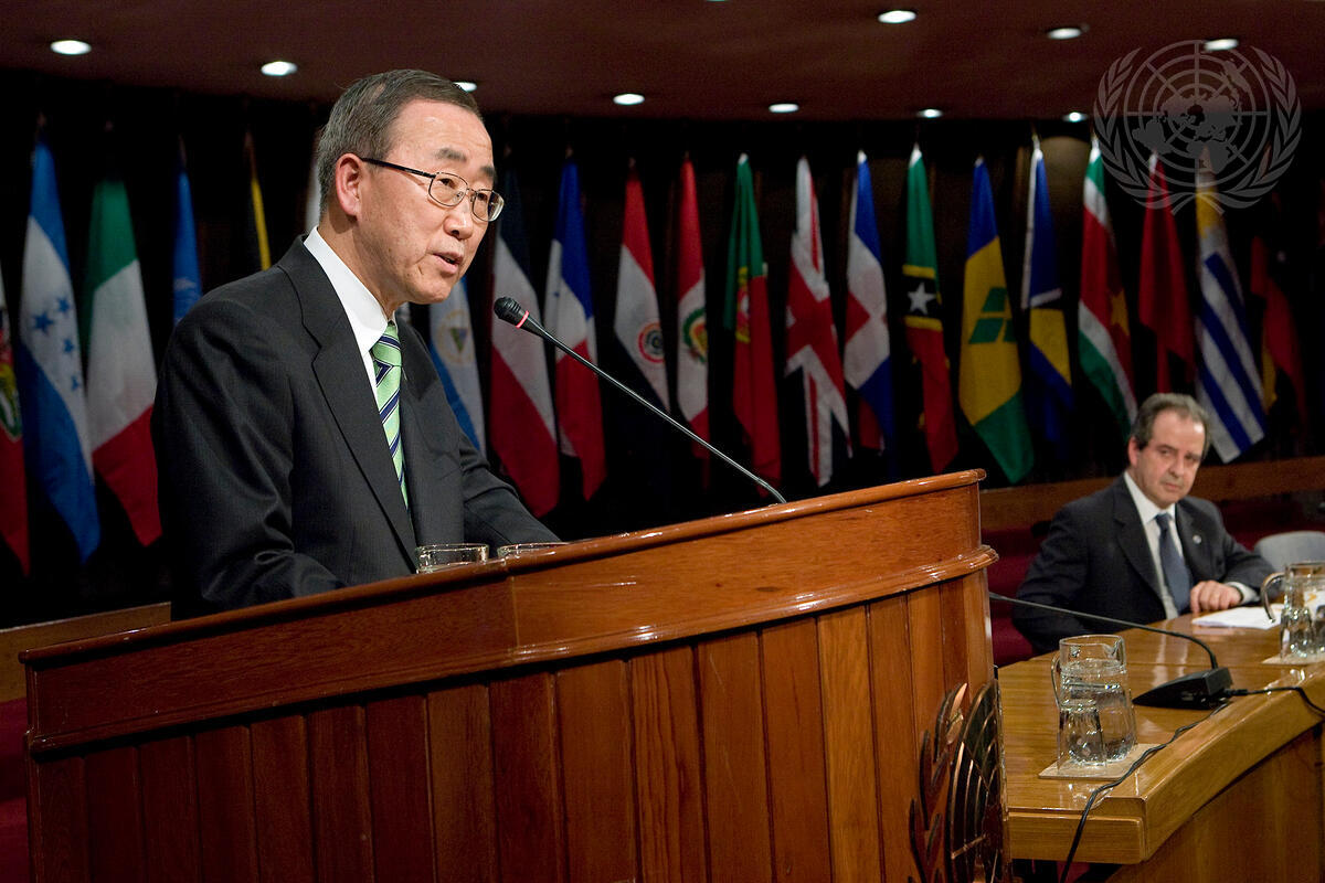 Secretary-General Ban Ki-moon addresses the staff of the United Nations Economic Commission for Latin America and the Caribbean (ECLAC).