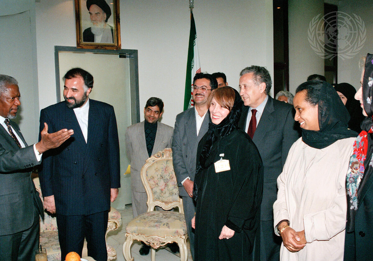 Secretary-General Kofi Annan (left) introducing his delegation to the Governor-General of Esfahan, Seyed Jafar Moussavi (second left).