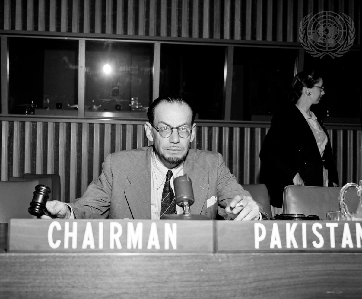 Mr. Muhammad Asad, member of the permanent delegation of Pakistan to the United Nations, unanimously elected Chairman of the third session of the General Assembly's Committee on Information from Non-Self-governing Territories, opening a meeting.