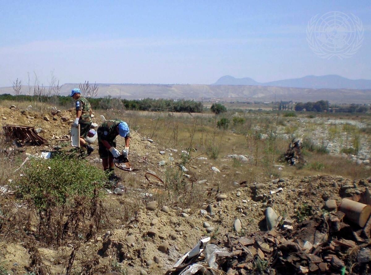 Soldiers and civilian police of the United Nations Peacekeeping Force in Cyprus join the local municipal workers to remove garbage and other debris from illegal dumping site in a buffer zone, as part of the activities marking the 2007 World Environment Day in Peristerona, Cyprus.