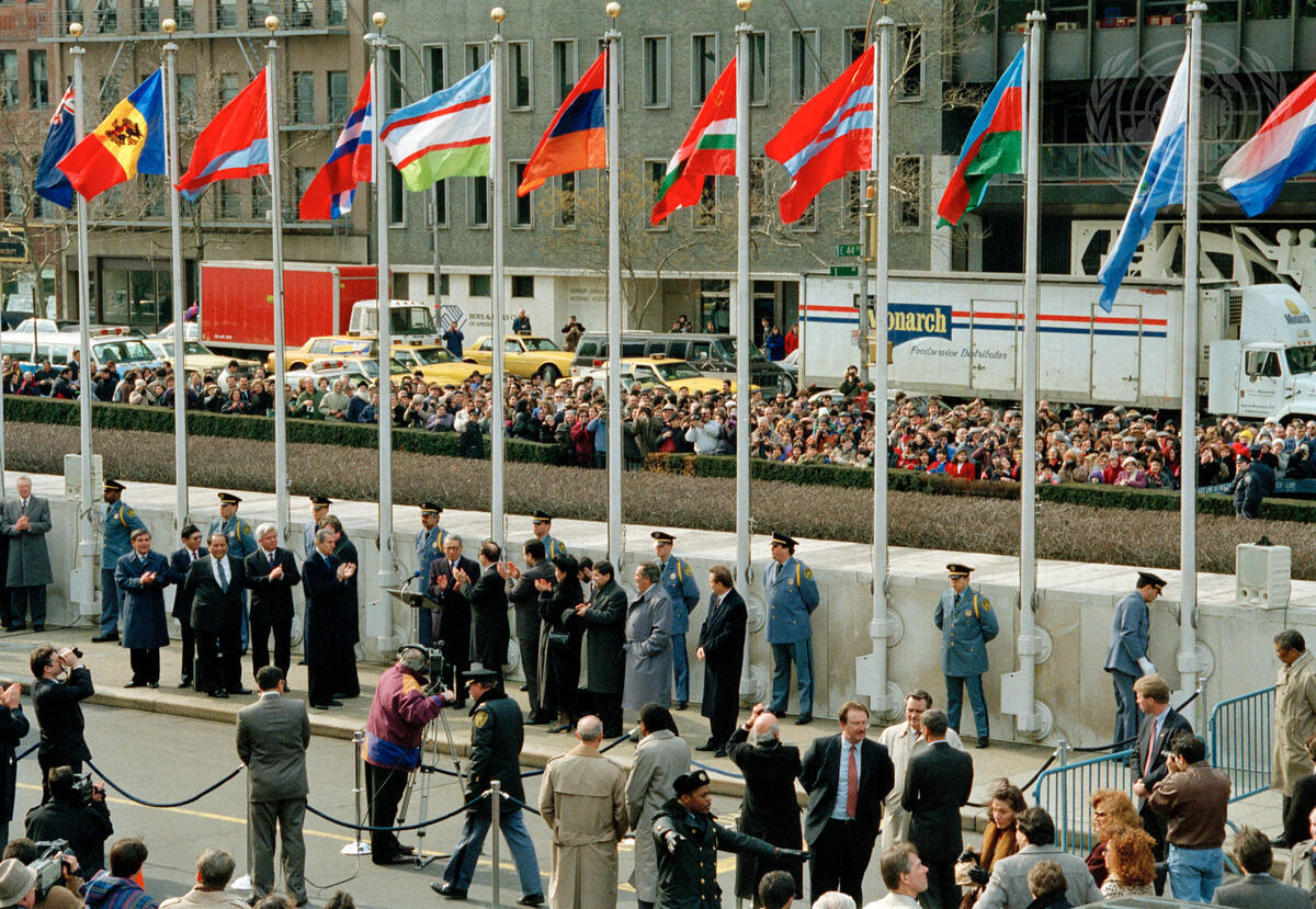 As its resumed forty-six session, the General Assembly admitted by acclamation nine States to membership of the United Nations, following the recommendations of the Security Council. Of the nine states, eight are former Republics of the Soviet Union - Moldova, Kazakhstan, Kyrgyzstan, Azerbaijan, Uzbekistan, Tajikistan, Turkmenistan and Armenia. The other State admitted was San Marino, bringing the total membership of the United Nations to 175 States.