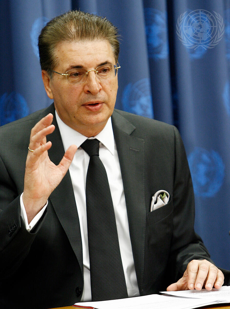 Srgjan Kerim, President of the sixty-second session of the General Assembly, addresses a press conference on the General Assembly debate on Global Private Investment and Climate Change.