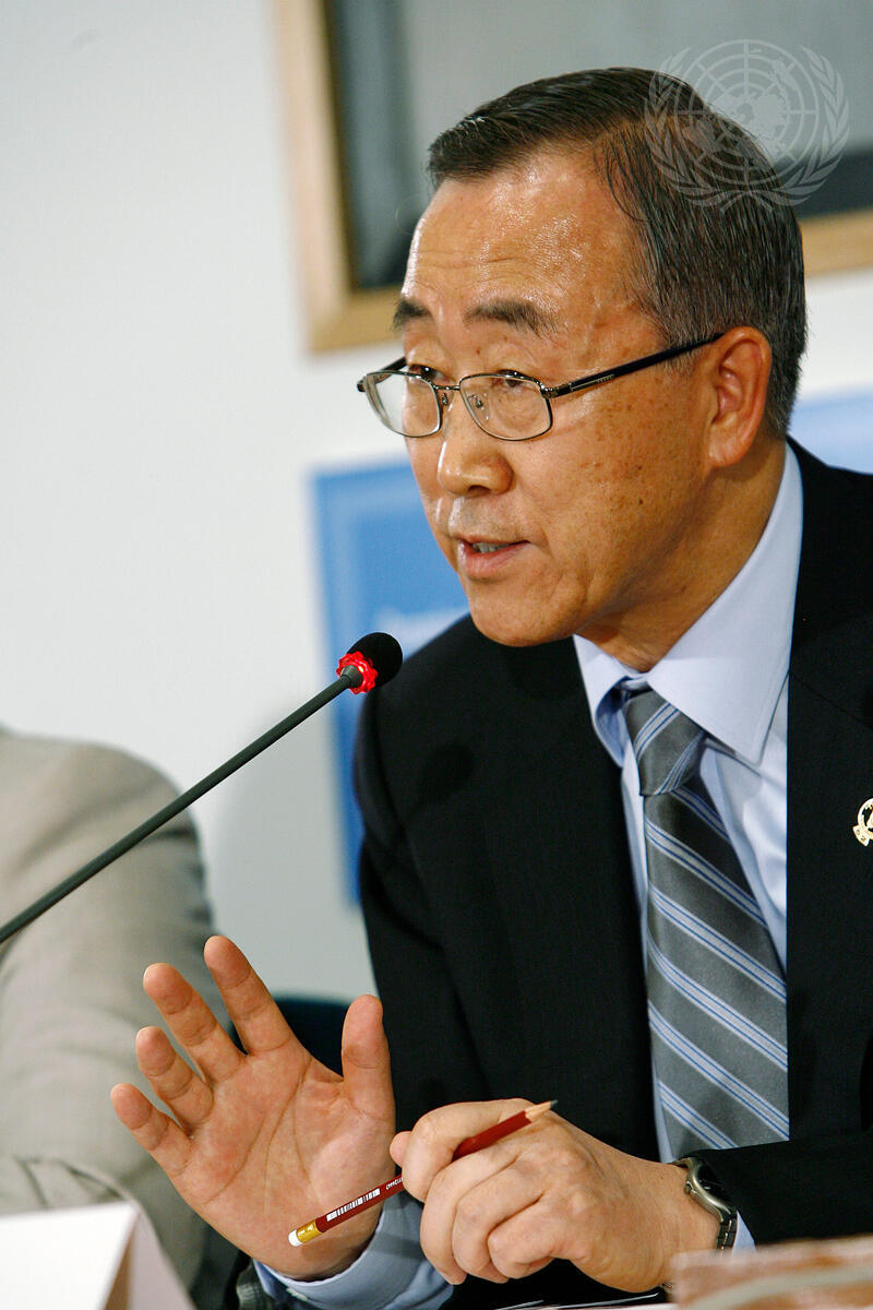 Secretary-General Ban Ki-moon addresses a press conference, following a High-Level Conference on the ""World Food Security: the Challenges of Climate Change and Bioenergy.""