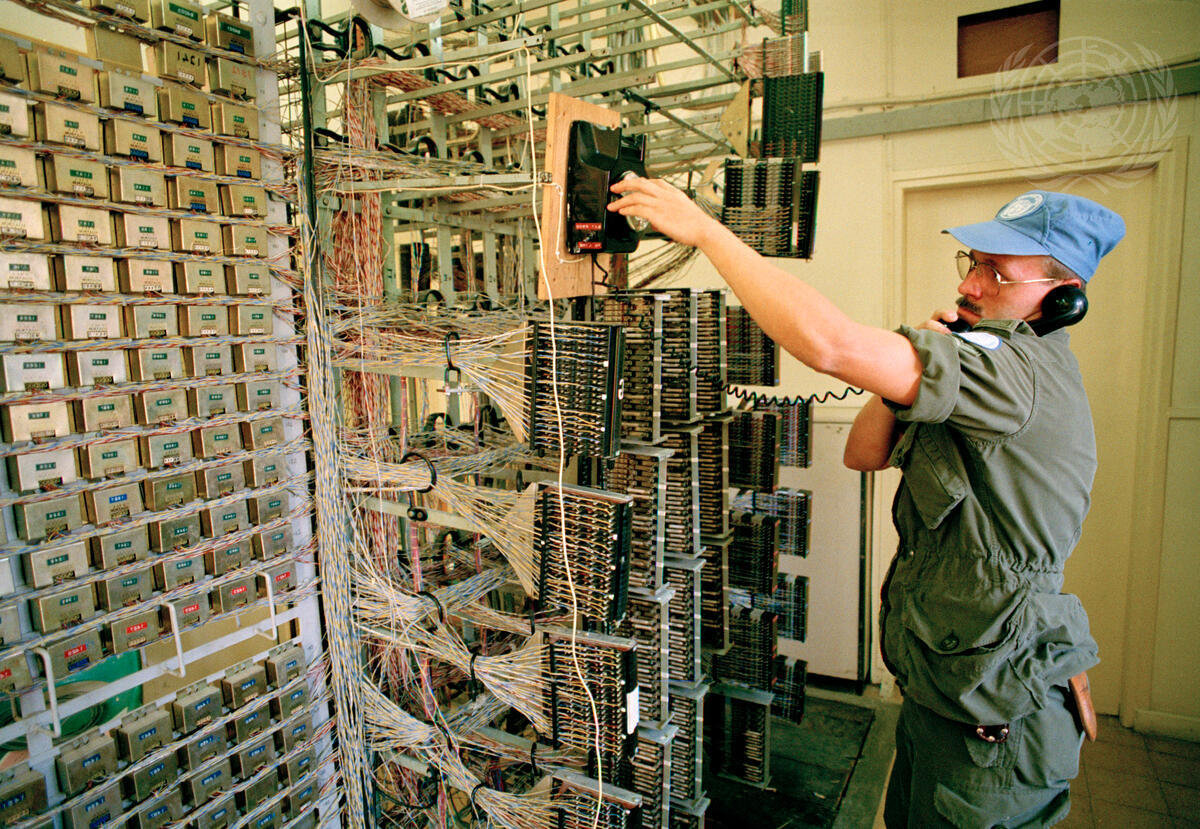 A Canadian soldier checks connections at Signal Squadron Headquarters in Nicosia.