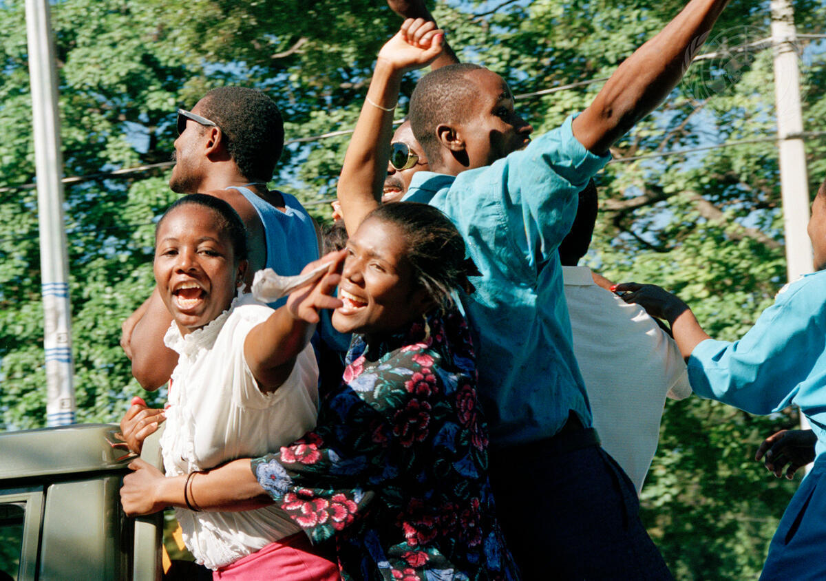 Haitians celebrate the election of Father Aristide.