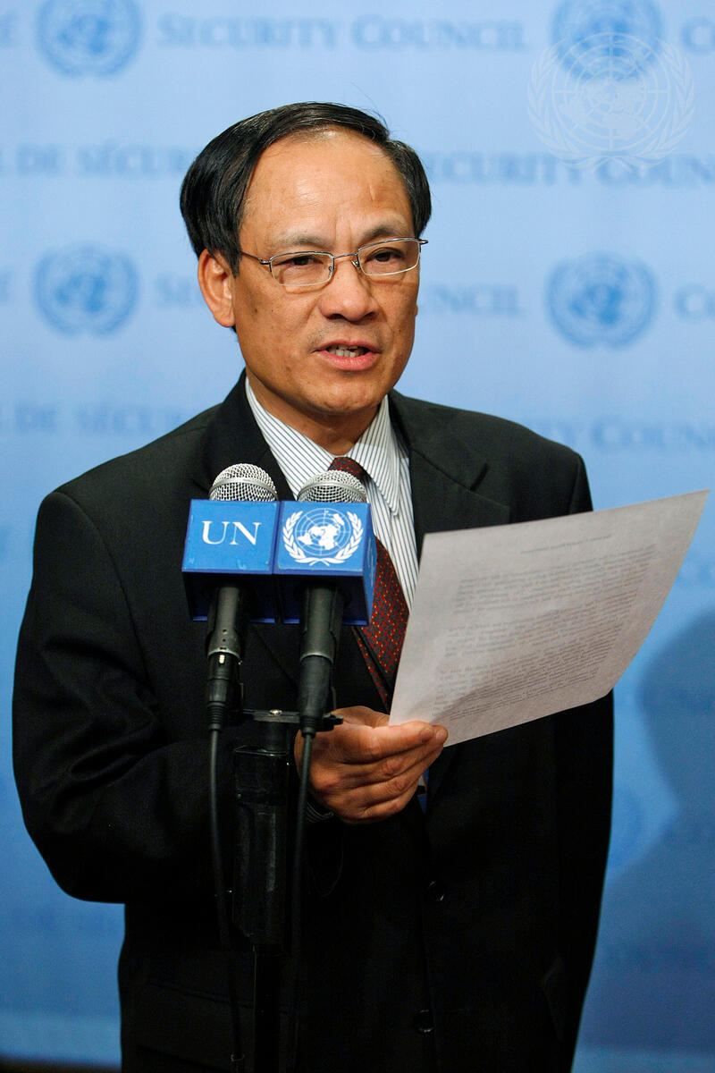 Le Luong Minh, Permanent Representative of Viet Nam to the United Nations and President of the Security Council for July, reads a presidential statement on the situation in Rwanda for the press.