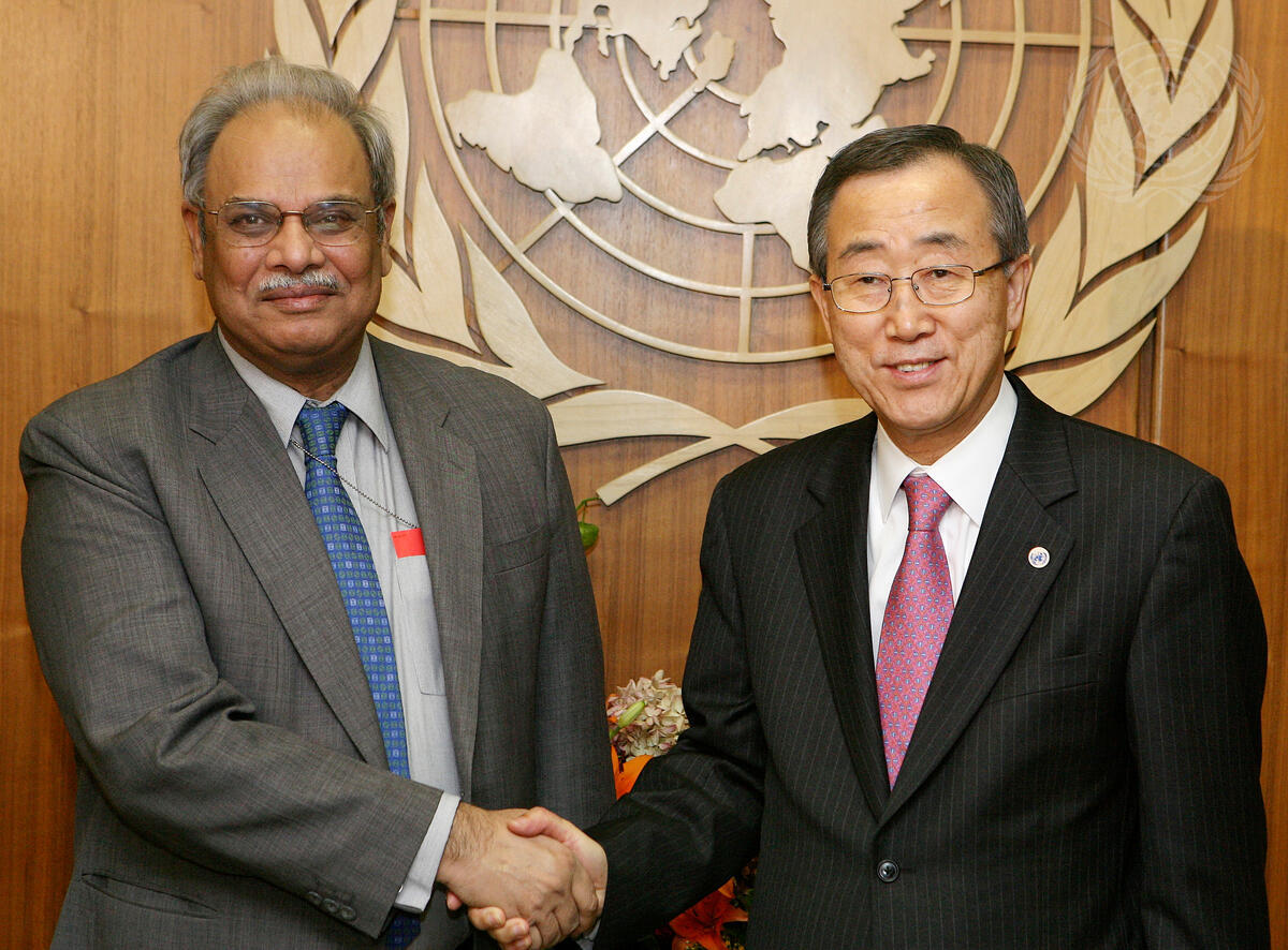 Secretary-General Ban Ki-moon (right) meets with Riaz Mohammad Khan, Foreign Secretary of the Islamic Republic of Pakistan.