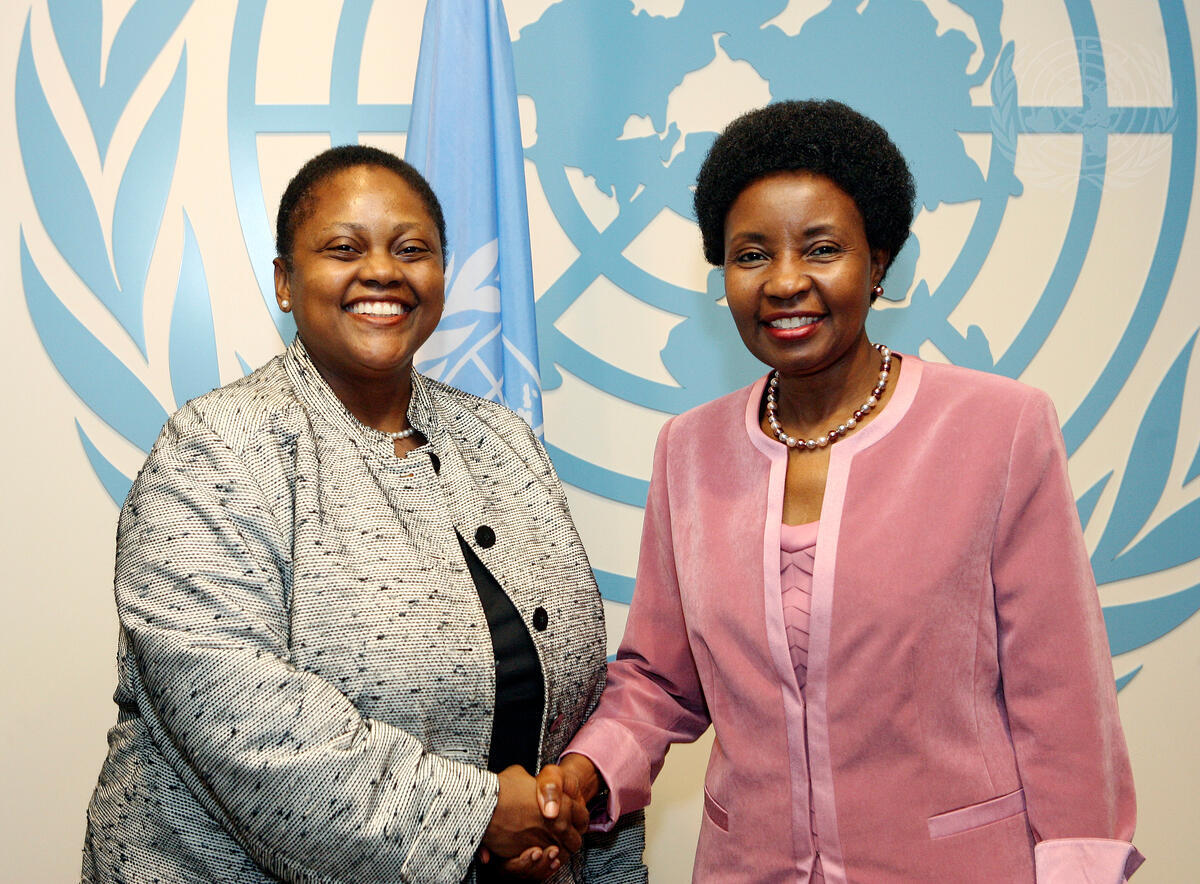Deputy Secretary-General Asha-Rose Migiro (right) meets with Jendayi E. Frazer, United States Deputy Secretary of State for African Affairs, at UN Headquarters in New York.