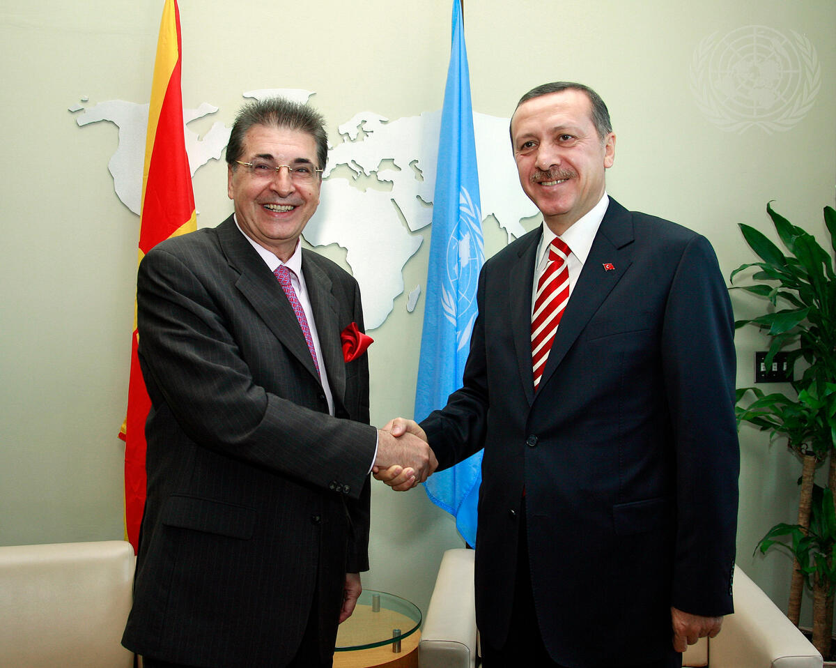 Srgjan Kerim (left), President of the sixty-second General Assembly meets with Recep Tayyip Erdogan, Prime Minister of Turkey, at UN Headquarters in New York.