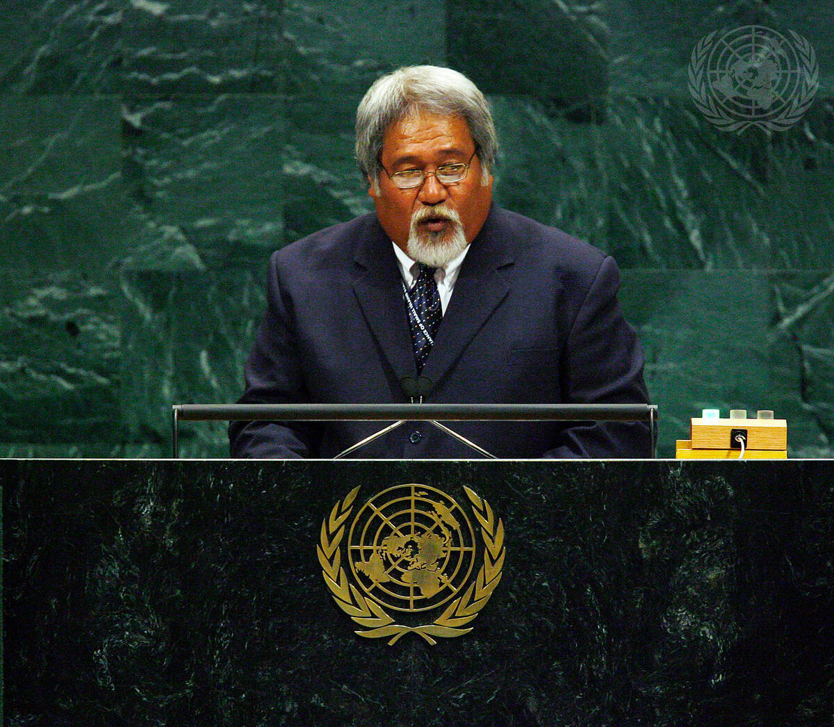 Tavau Teii, Deputy Prime Minister and Minister of Natural Resources and the Environment of Tuvalu, addresses the general debate of the sixty-second session of the General Assembly, at UN Headquarters in New York.