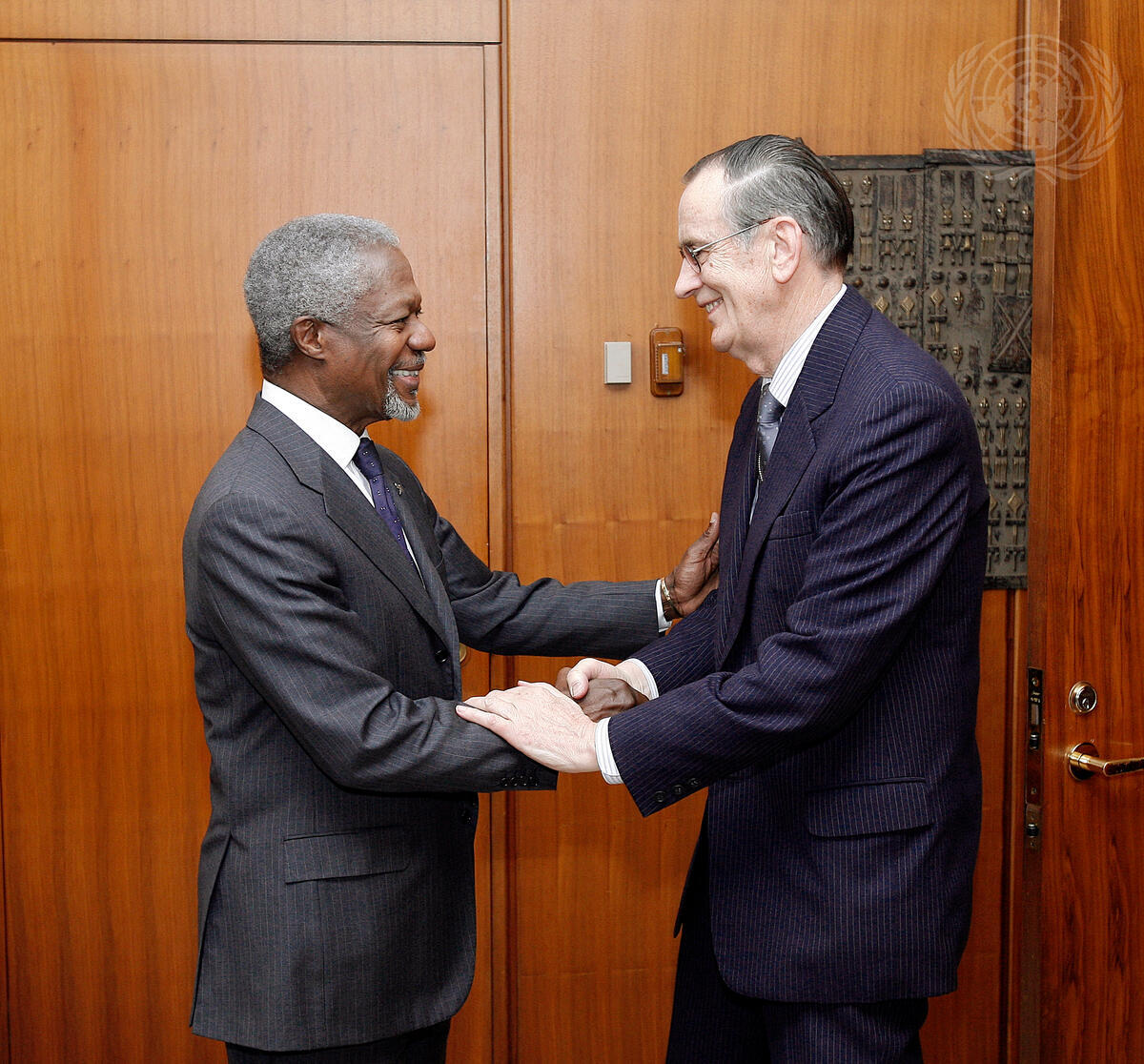Secretary-General Kofi Annan (left) meets Eugeniusz Wyzner, member of the International Civil Service Commission (ICSC).