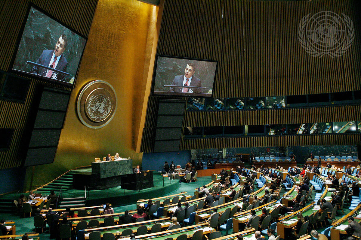 Wide-view of the sixty-second session of the General Assembly considering the necessity of ending the economic, commercial and financial embargo imposed by the United States of America against Cuba, at UN Headquarters in New York.