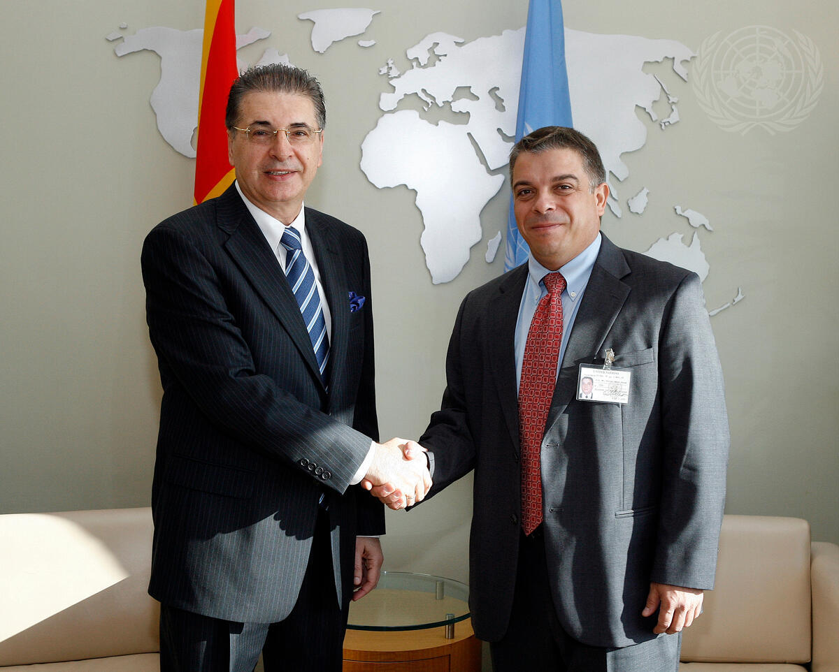 Srgjan Kerim (left), President of the sixty-second session of the General Assembly, meets with Felipe Pérez Roque, Minister for Foreign Affairs of Cuba, at UN Headquarters in New York.