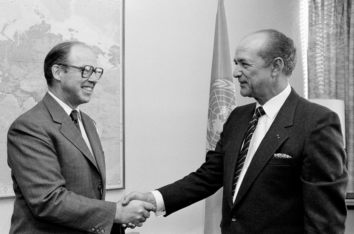The President of the General Assembly, Jorge E. Illueca (Panama), today met at United Nations Headquarters with the Director-General of the International Atomic Energy Agency (IAEA), Hans Blix (left), who is here to introduce his Agency's report to the General Assembly.
