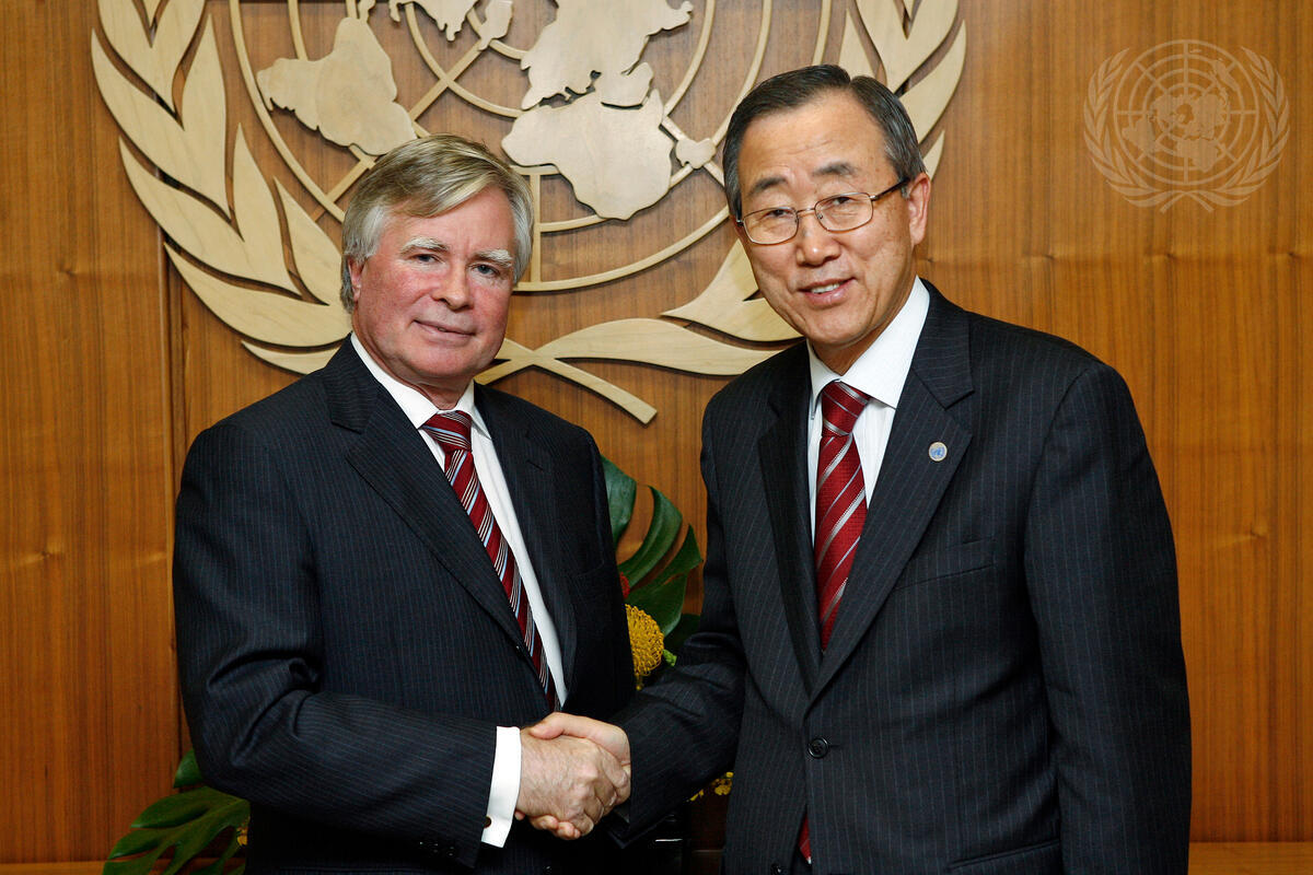 Secretary-General Ban Ki-moon (right) meets with Philippe Kirsch, President of the International Criminal Court (ICC).