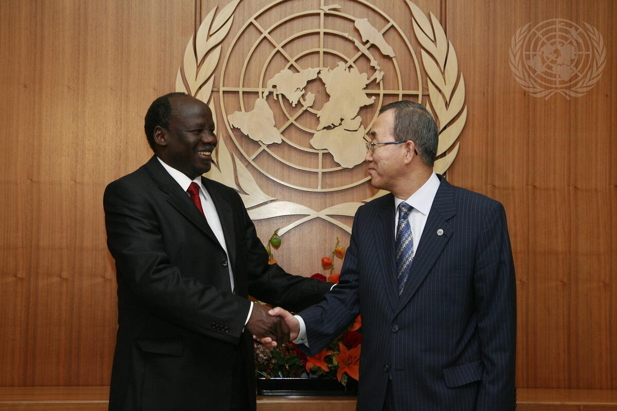 Secretary-General Ban Ki-moon (right) meets with Lam Akol Ajawin, Minister for Foreign Affairs of the Republic of the Sudan.