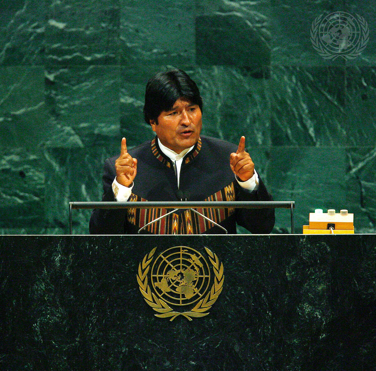 Evo Morales Ayma, President of the Constitutional Republic of Bolivia, addresses the general debate of the sixty-second session of the General Assembly, at UN Headquarters in New York.