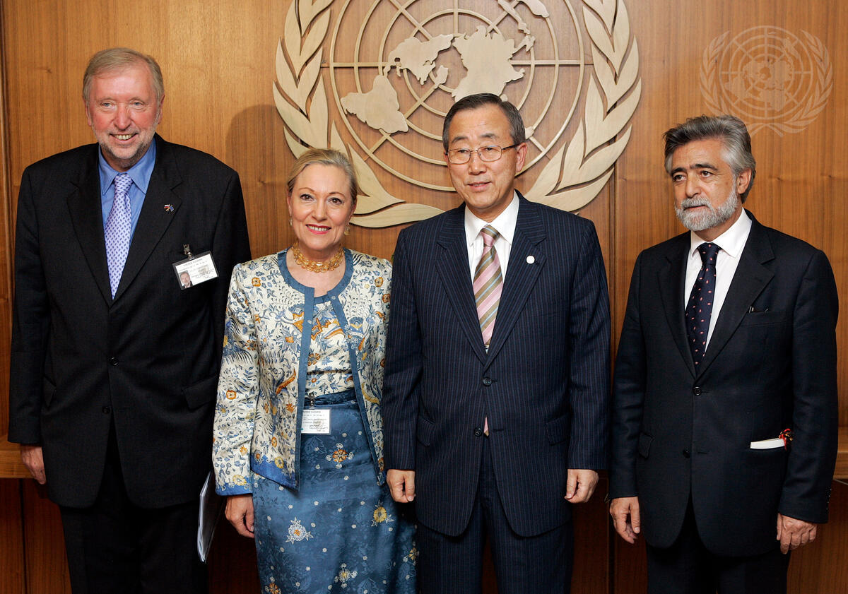 Secretary-General Ban Ki-moon (second from right) meets with members of the European Union (EU) Troika, Dimitrij Rupel (left), Minister for Foreign Affairs of Slovenia; Benita Ferrero-Waldner (second from left), European Union Commissioner for External Affairs; and Luis Felipe Marques Amado, Minister for Foreign Affairs of Portugal.