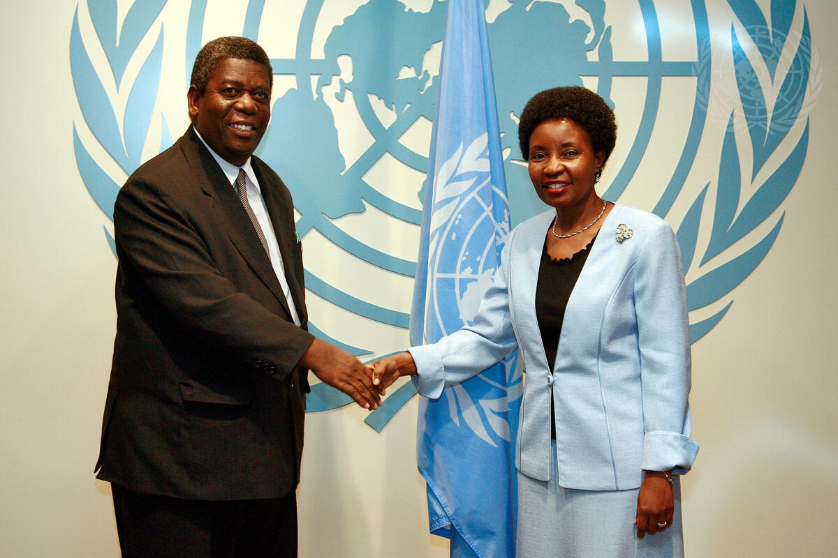 Deputy Secretary-General Asha-Rose Migiro (right) meets with Mwinyihaji Makame, Minister for Finance and Economic Affairs of Zanzibar, at UN Headquarters in New York.