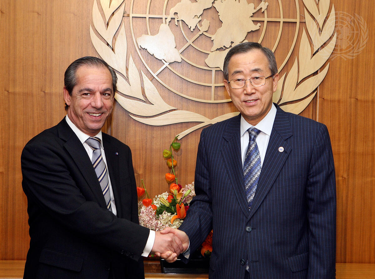 Secretary-General Ban Ki-moon (right) meets with Lawrence Gonzi, Prime Minister of Malta.