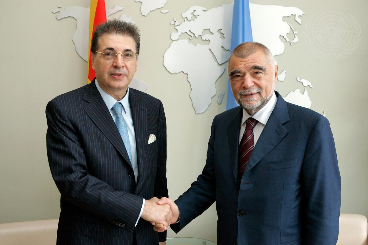 Srgjan Kerim (left), President of the sixty-second session of the General Assembly meets with Stjepan Mesic, President of the Republic of Croatia, at UN Headquarters in New York.