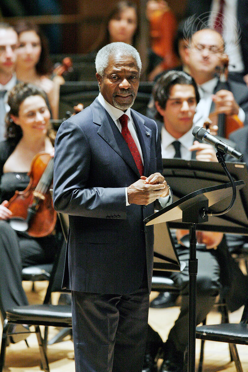 Secretary-General Kofi Annan speaks at a concert by the West-Eastern Divan Orchestra in his honour, sponsored by the Government of Spain, at United Nations Headquarters in New York.