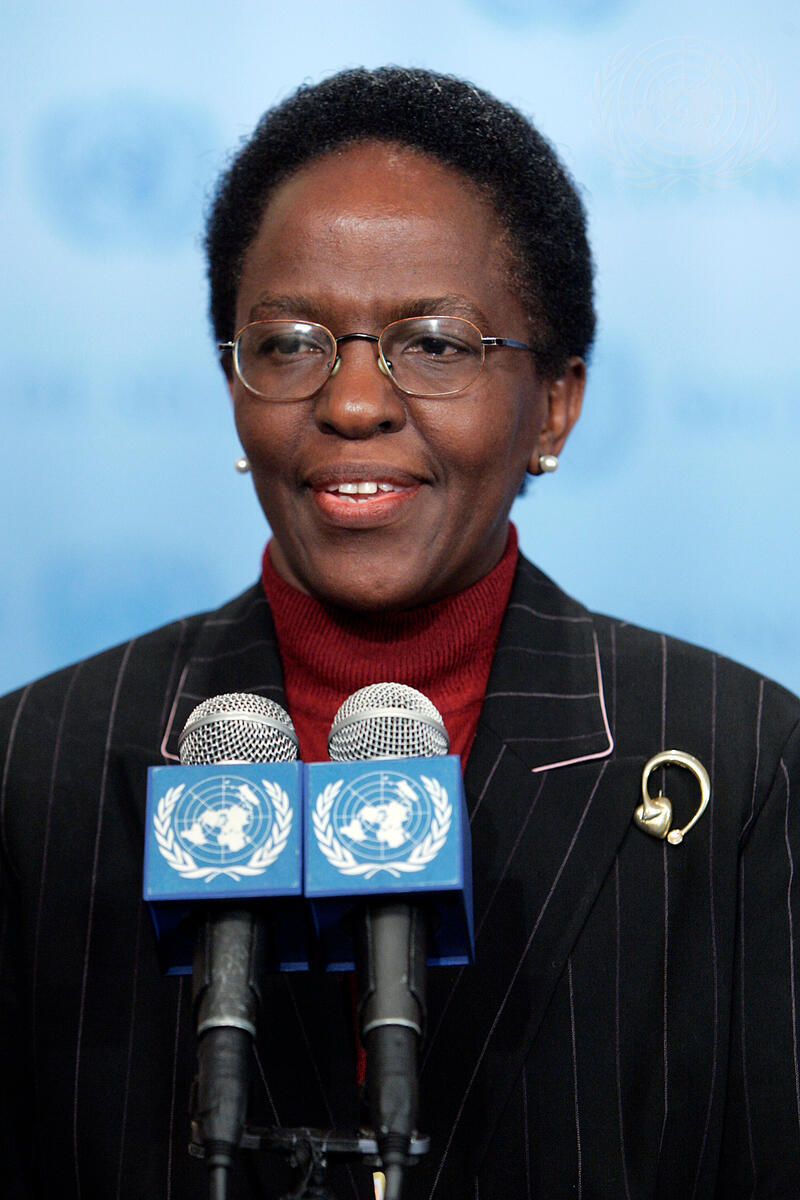 Liberata Mula Mula, new Executive Secretary of the Great Lakes Conference Secretariat, talks to correspondents after briefing the Security Council on the situation in the Great Lakes Region of Africa, at United Nations Headquarters in New York.