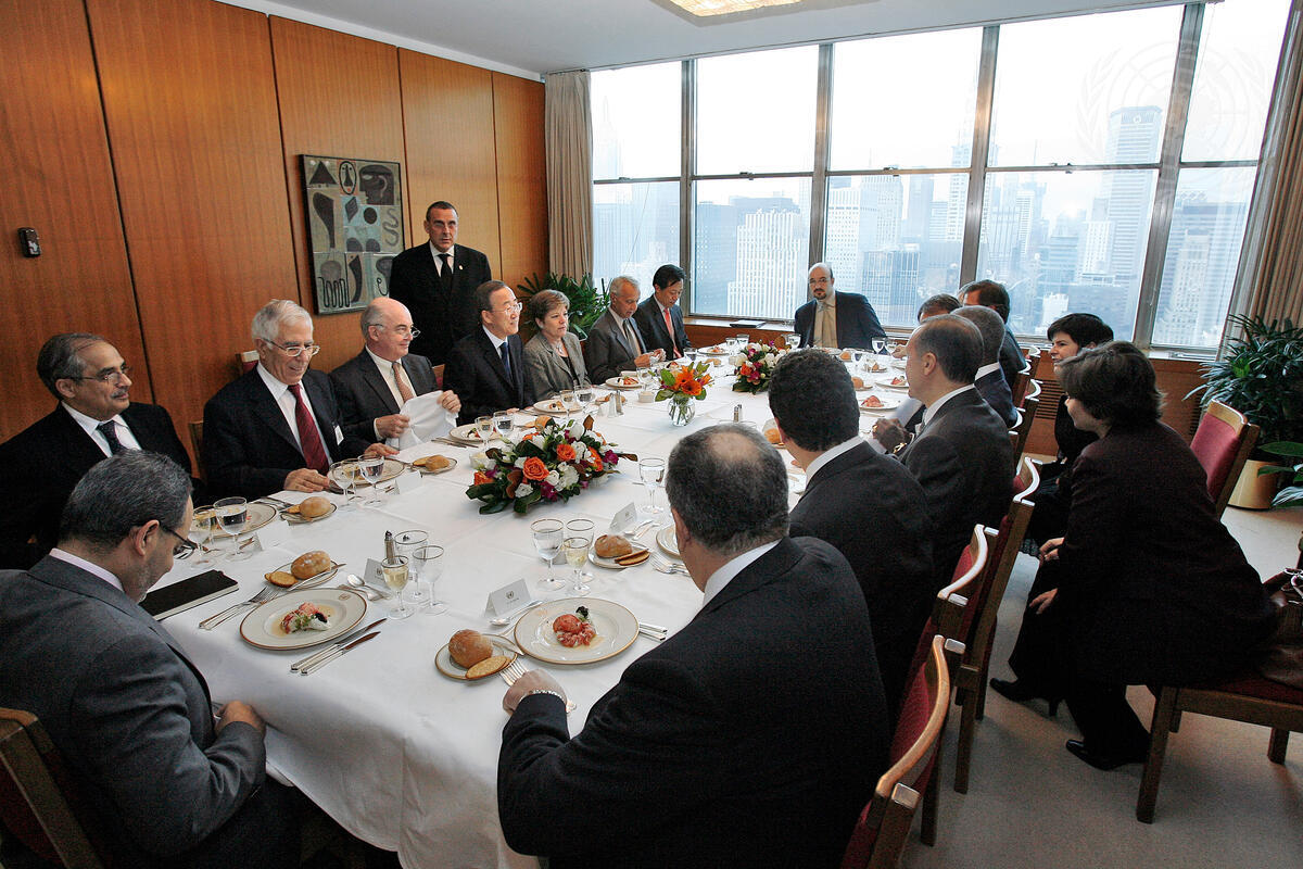 Secretary-General Kofi Annan (seated fourth from right) hosts a luncheon in honour of José Luis Rodríguez Zapatero, Prime Minister of Spain and Recep Tayyip Erdogan, Prime Minister of Turkey, at United Nations Headquarters in New York.