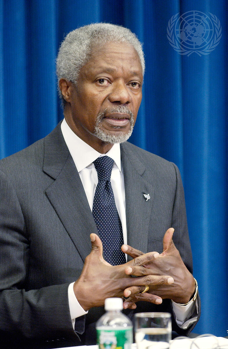 Secretary-General Kofi Annan addresses correspondents on the situation in tsunami affected regions following today's emergency meeting on UN's relief effort.