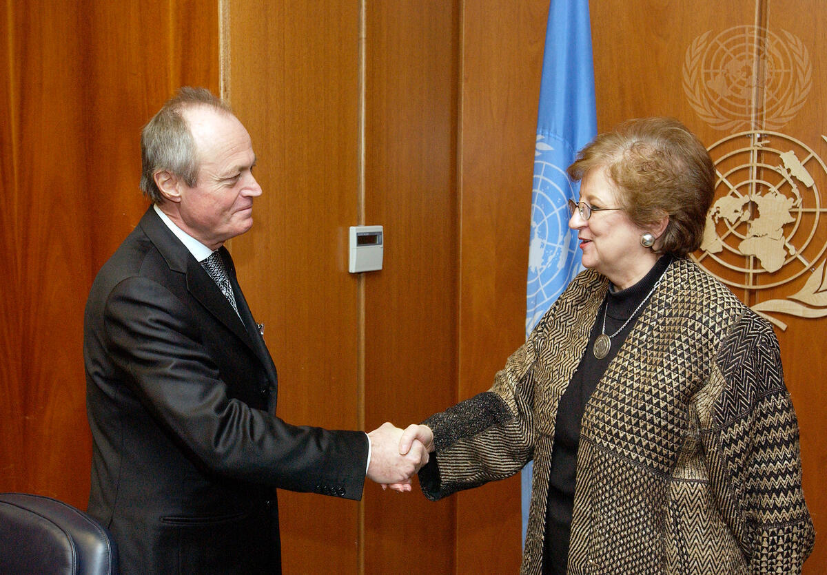 Deputy Secretary-General Louise Fréchette (right) meets with Peter Medgyessy, former Prime Minister of the Republic of Hungary.