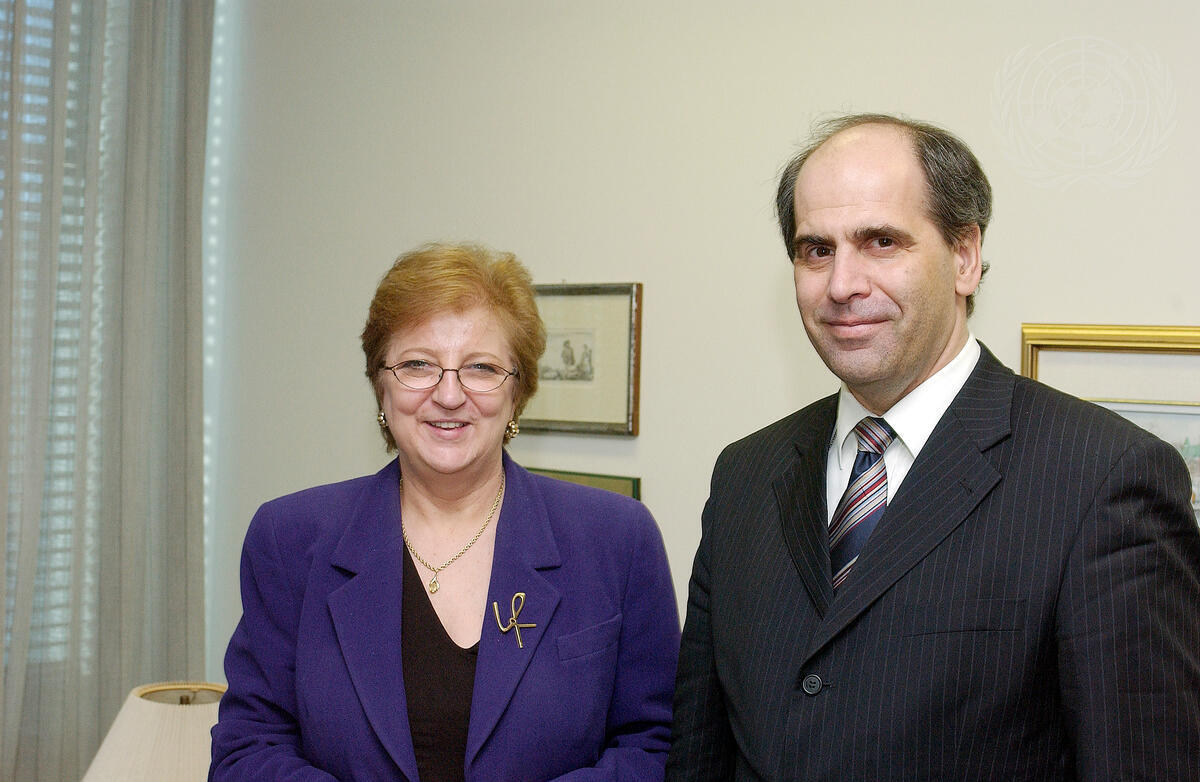 Deputy Secretary-General Louise Fréchette (left) meets with Peter Burian, Permanent Representative of the Slovak Republic to the United Nations, today at UN Headquarters.