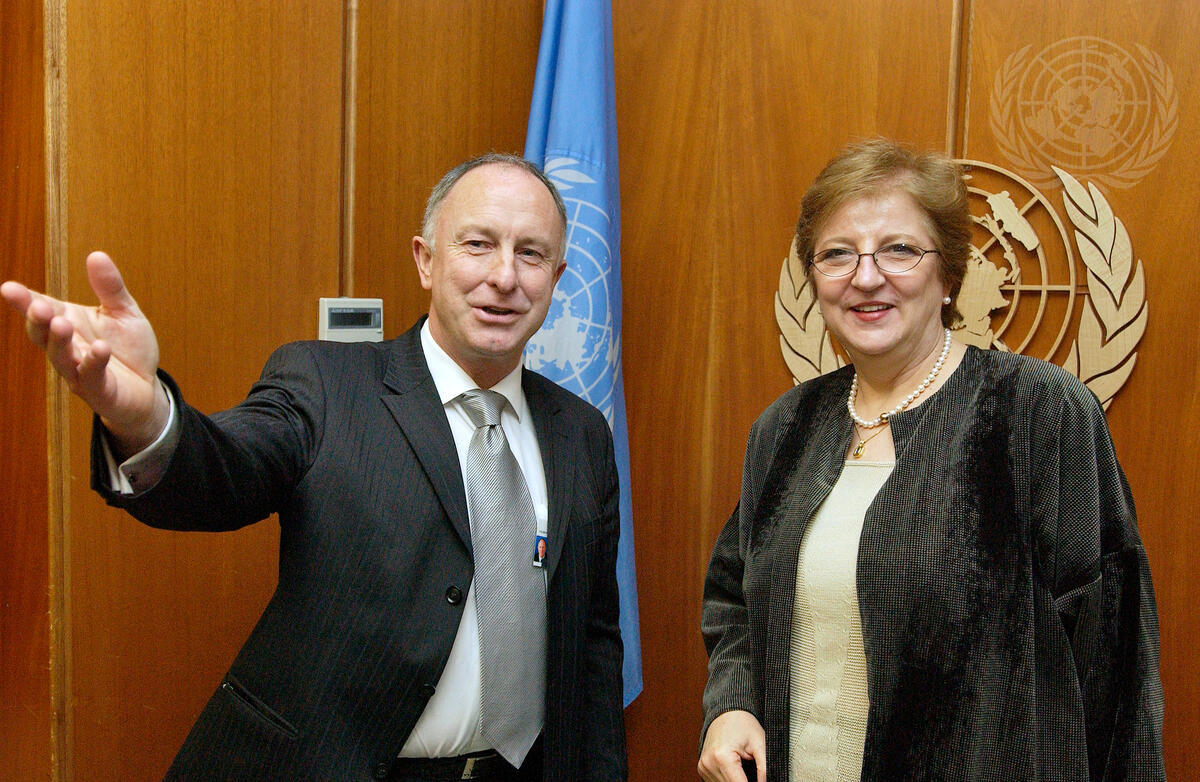 Deputy Secretary-General Louise Fréchette (right) meets with Dermot Ahern, Minister for Foreign Affairs of Ireland, today at UN Headquarters.