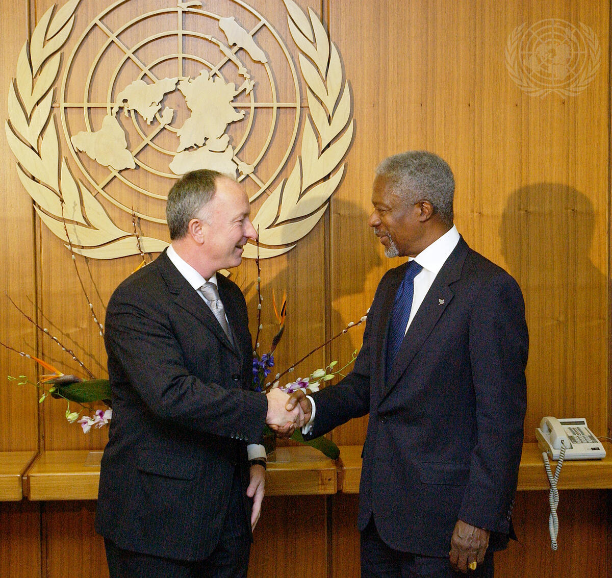 Secretary-General Kofi Annan (right) meets with Dermot Ahern, Minister for Foreign Affairs of Ireland, today at UN Headquarters.