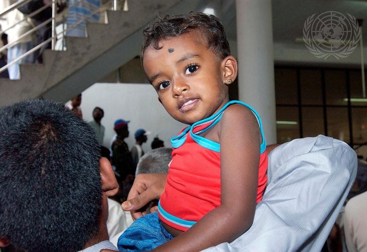 A young child at the Cabeeer Jumma mosque in Hambantota, which now serves as a temporary accommodation center to more than 16 families displaced by the destructive tsunami of 26 December 2004.