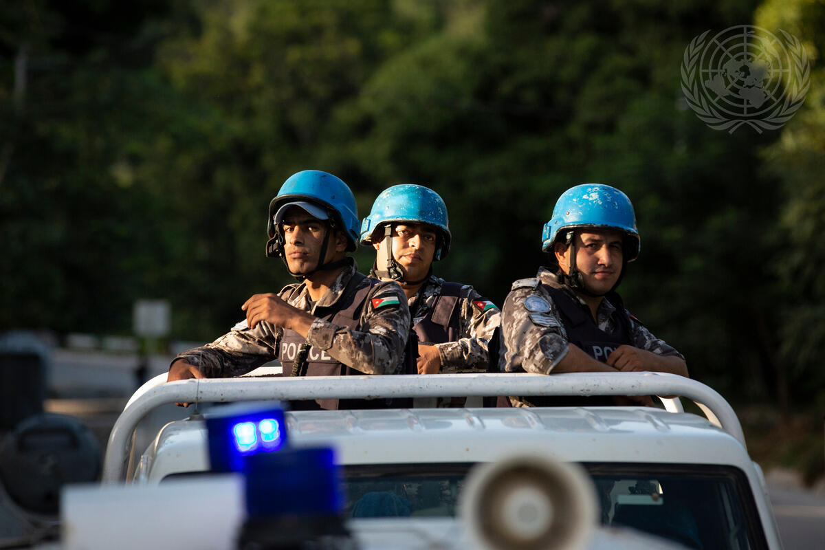 Members of the Formed Police Unit (FPU) from Jordan serving with the United Nations Mission for Justice Support in Haiti (MINUJUSTH) on a joint patrol with the Haitian National Police (HNP) and other UN Police based in Gonaïves.