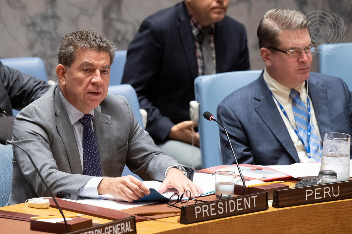Gustavo Meza-Cuadra Velásquez, Permanent Representative of Peru to the United Nations and President of the Security Council for the month of July, chairs the Security Council meeting on the situation in the Middle East (Syria).