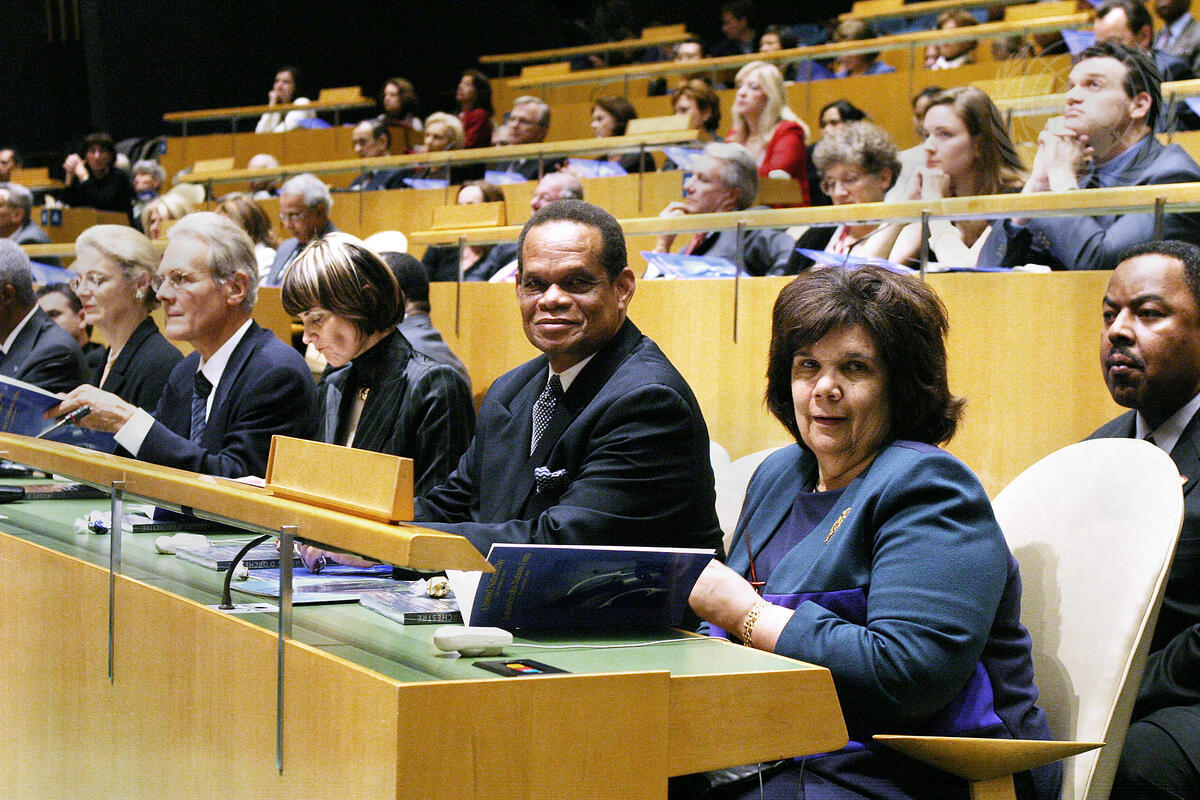At this evening's concert from right to left: Jennifer Hunte; Julian R. Hunte, President of the fifty-eighth session of the General Assembly; Micheline Calmy-Rey, Minister for Foreign Affairs of Switzerland; Jeno C.A. Staehelin, Permanent Representative of Switzerland to the United Nations, and Nane Annan.