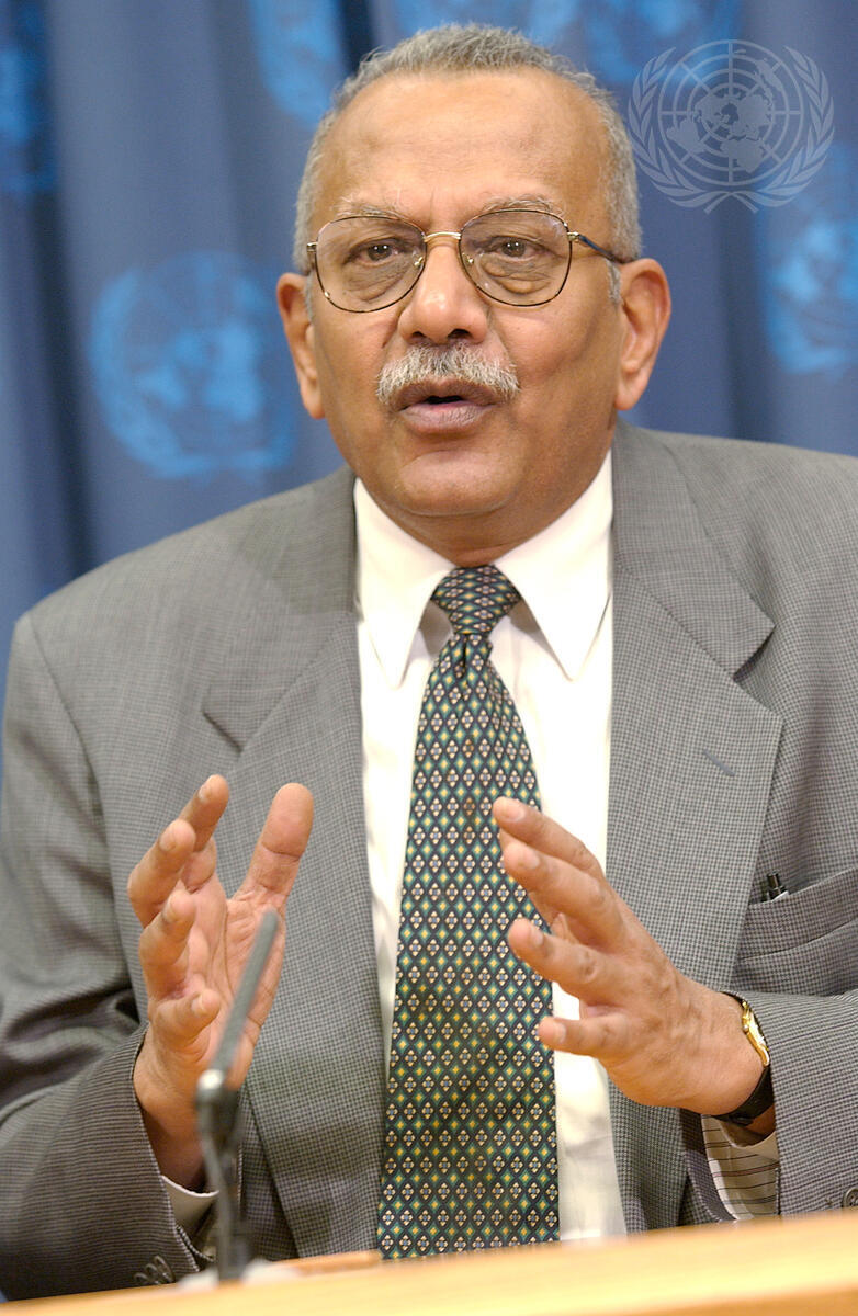 Nitin Desai, Secretary-General's Special Adviser for the World Summit on the Information Society, addressing correspondents at UN Headquarters.