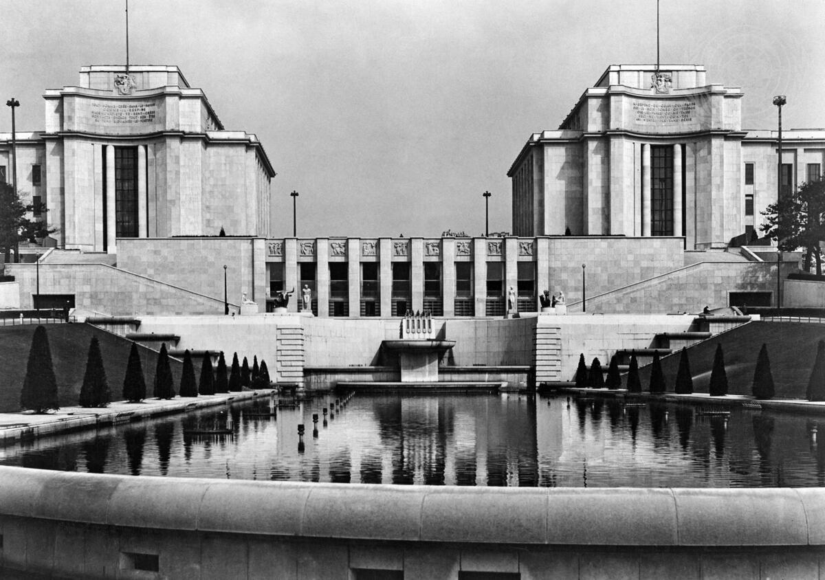 Partial view of the Palais de Chaillot, Paris, where the Third Regular Session of the United Nations General Assembly will convene in September 1948. The Palais is located near the Eiffel Tower, on the site of the 1937 Paris World Fair.