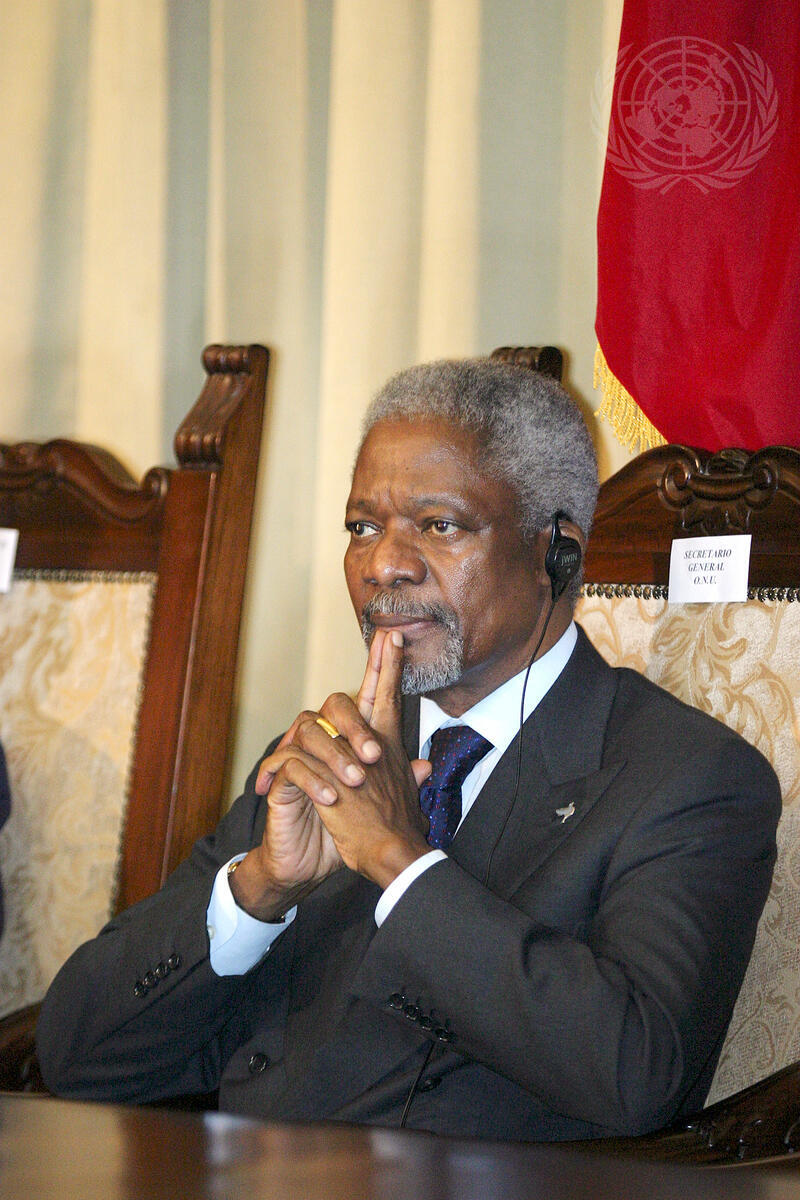 Secretary-General Kofi Annan at the City Hall in Guayaquil, Ecuador, before receiving the keys to the City.